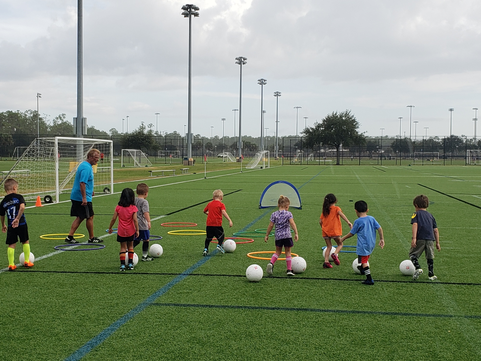 The Sokker Kidz programs for 2-5-year-old children concentrates on creating and establishing a unique soccer skills environment with professional coaches. Our SokkerKidz 2-3 year old players train once per week for 45 minute while the SokkerKidz 4-5 year old players train for 55 minutes once per week. It is a fun-filled atmosphere that introduces wannabe soccer players to the skills necessary to play the game. A T/Th/S FISA League is also available at our Cocoa location for players 6-12 years of age (more information can be found at www.floridainternationalsa.com).